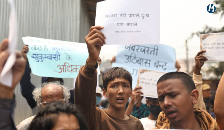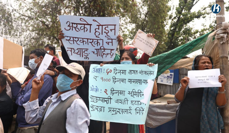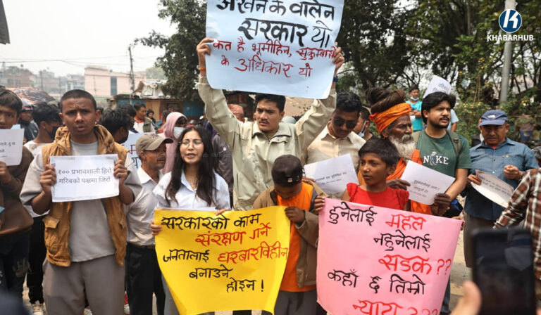 काठमाडौं– सुकुम्वासी बस्ती खाली गराउने सरकारको निर्णयको विरुद्धमा विरोध प्रदर्शन भएको छ ।
