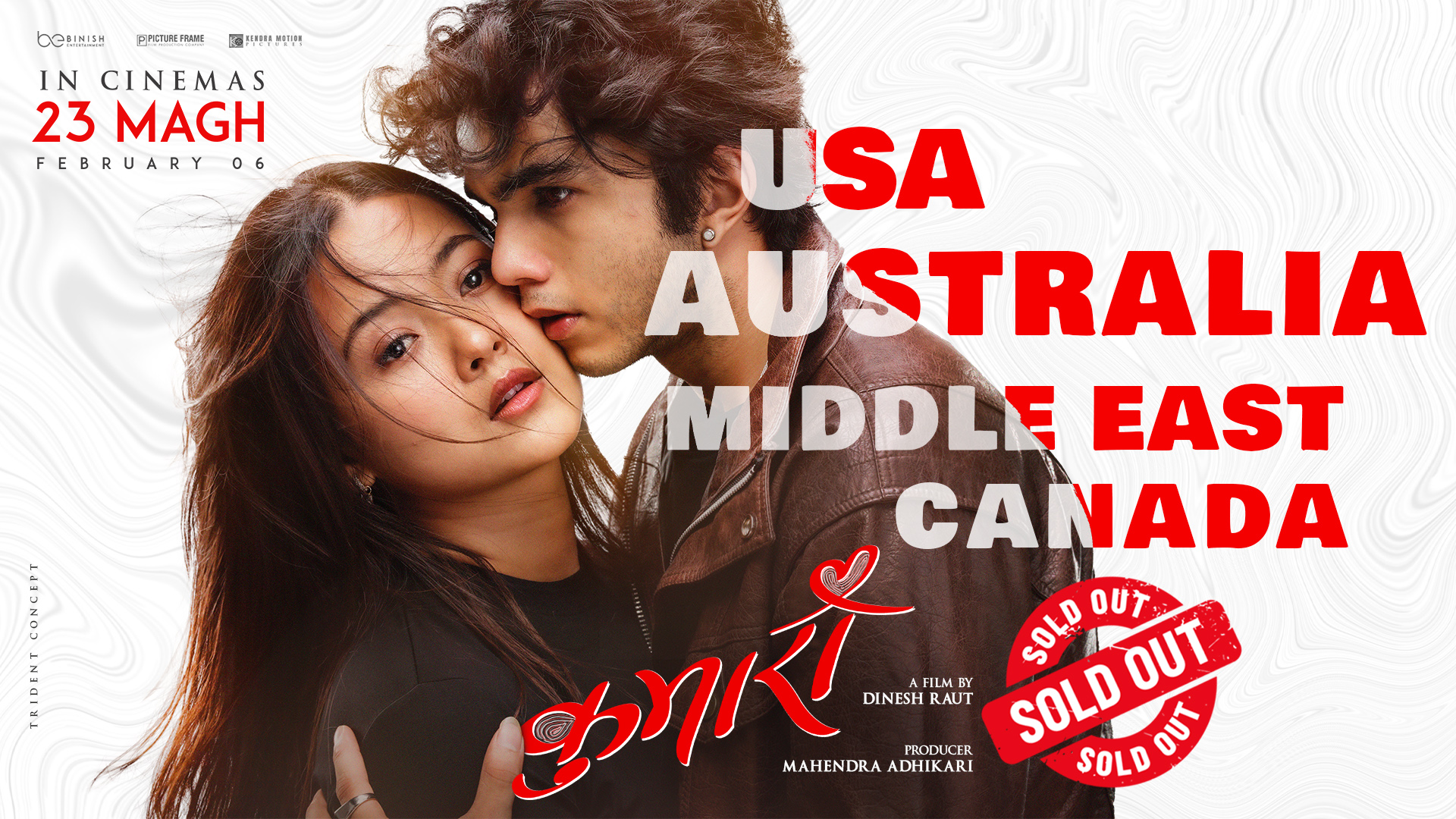 निर्माता महेन्द्र अधिकारीका अनुसार अस्ट्रेलिया, अमेरिका, क्यानडा र मध्यपूर्वका देशका लागि प्रदर्शन अधिकार बिक्री भएको हो ।