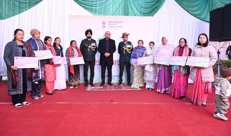 यस अवसरमा कार्यवाहक राजदूत पाण्डेले भारतीय सशस्त्र बलका दिवंगत सैनिकका श्रीमती तथा निकटतम नातेदारहरूलाई सम्मान गर्दै कुल ७ करोड २० लाख नेपाली रुपैयाँ बराबरका आर्मी ग्रुप इन्स्योरेन्स फन्ड (एजीआईएफ) का चेकहरू हस्तान्तरण गरे ।