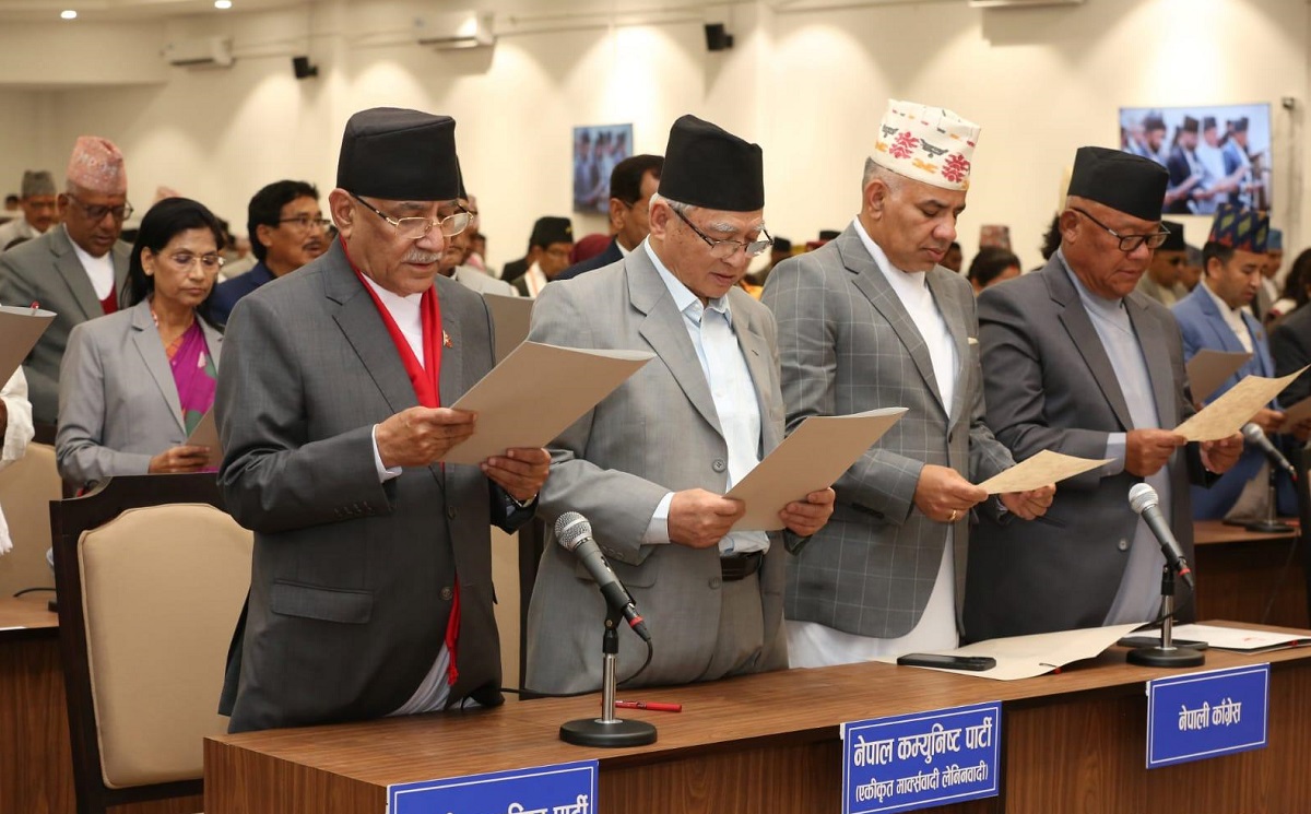 तीनवटै दल एउटै बेञ्चमा बस्न लागेको भने यो पहिलो पटक हो । यसपटक तीन दलमध्ये कांग्रेस प्रमुख प्रतिपक्ष र अन्य दुई दल प्रतिपक्षको भूमिका रहनेछन् । एउटै विपक्षी बेञ्चमा तीन दल रहनेछन् । गत फागुन २१ गते सम्पन्न प्रतिनिधिसभा सदस्य निर्वाचनपछि आज मात्र प्रतिनिधि सभा सदस्यहरुले पद तथा गोपनीयताको शपथ ग्रहण गरेका हुन् ।