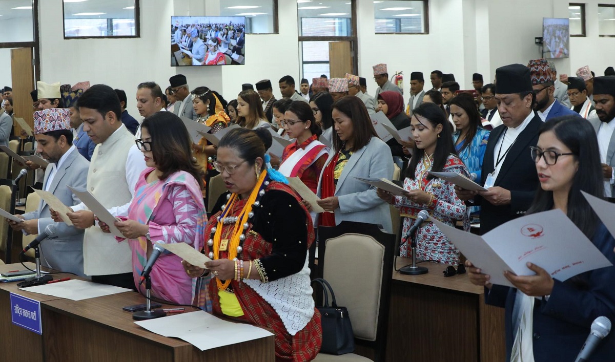 सिंहदरबारस्थित संसद् भवनमा प्रतिनिधिसभाको ज्येष्ठ सदस्य अर्जुननरसिंह केसीद्वारा सांसदहरुले शपथ लिएका हुन् । मातृभाषामा शपथ ग्रहण गर्ने सांसदहरुमा यज्ञबहादुर बोगटीले अछामी, मोहम्मद इस्तियाक राईले अवधि, आकृति अवस्थीले डोटेली, गङ्गा छन्त्यालले छन्त्याल, करिस्मा कठरियाले ‘कठरीया थारू’ भाषामा शपथ लिएका छन्।