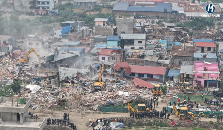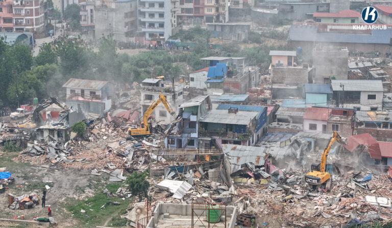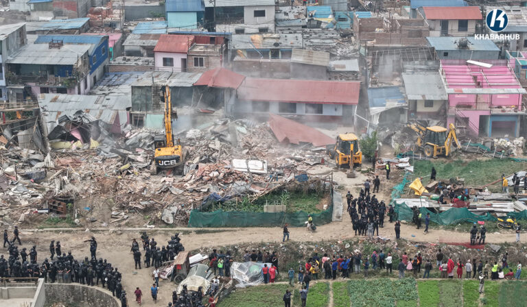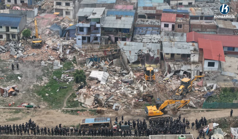 आज बिहानैदेखि बस्तीमा भक्तपुरबाट खटिएका एक हजार ३०० नेपाल प्रहरी र ६०० सशस्त्र प्रहरी परिचालन गरेर संरचना भत्काउन सुरु गरिएको हो ।