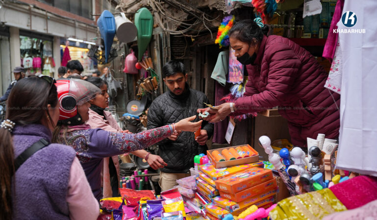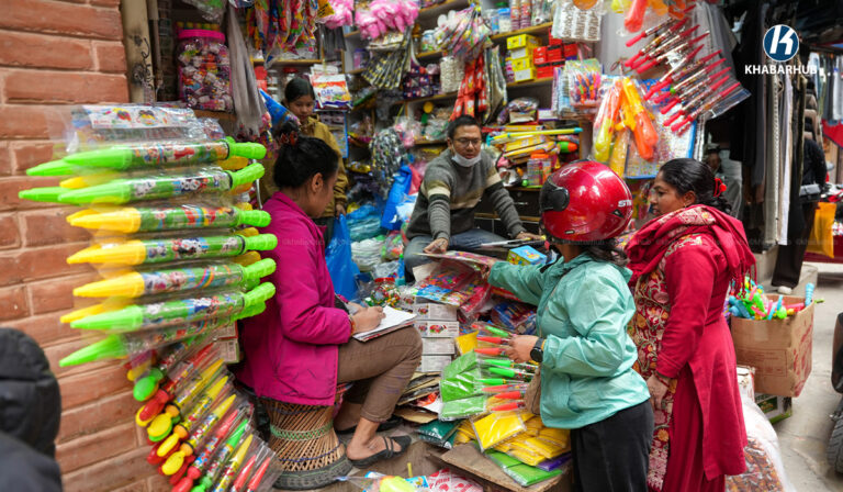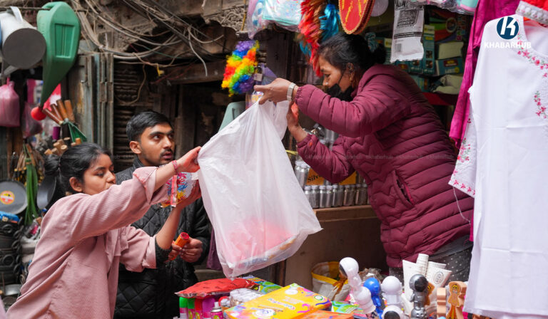 काठमाडौं– रङको पर्व होली नजिकिँदै जाँदा काठमाडौंको असन र इन्द्रचोक क्षेत्रमा किनमेल गर्नेको भीड बढेको छ ।