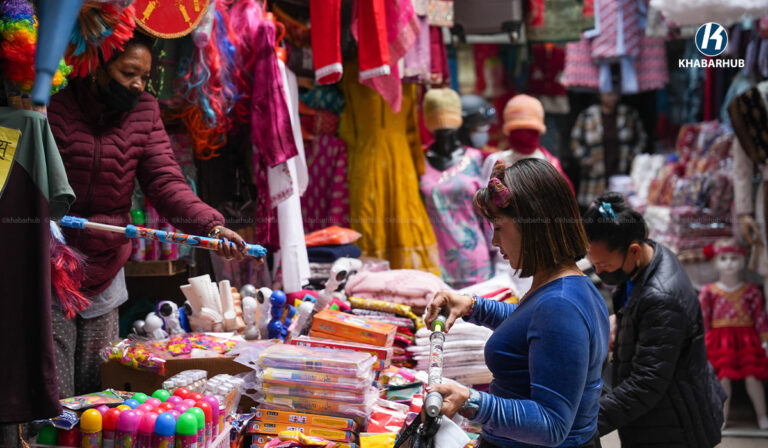पसलहरूमा विभिन्न रङ र सजावटका सामग्री सजाइएका छन् भने व्यापारीहरू पनि चाडपर्व लक्षित व्यापारले उत्साहित देखिएका छन् ।