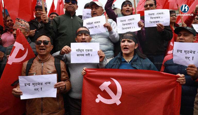 एमाले केन्द्रीय कार्यालय च्यासलमा सचिवालयको आकस्मिक बैठक चलिरहेका बेला कार्यकर्ताले काठमाडौँको चाबहिल चोकबाट विरोध प्रदर्शन सुरु गरेका हुन् ।