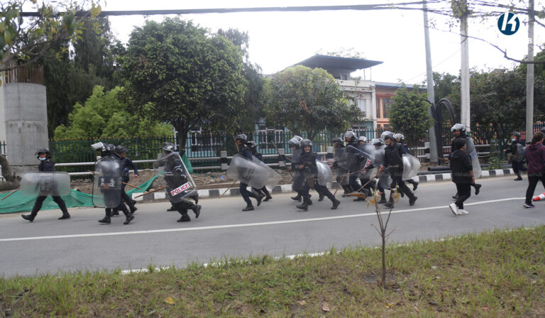 प्रदर्शनकारीहरू नयाँ बानेश्वरतर्फ अघि बढ्न खोजेपछि सुरक्षाकर्मीले रोक्न प्रयास गरेका छन् । त्यसक्रममा स्थिति चर्किँदै जाँदा प्रहरीले धरपकड सुरु गरेको छ।