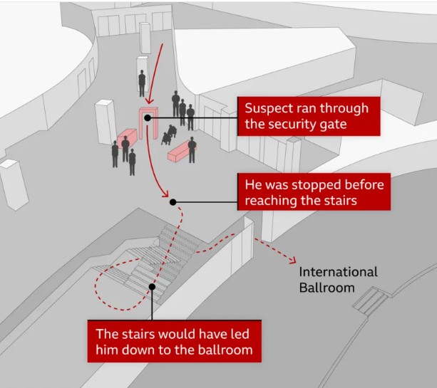 घटनाका बेला होटलको हलमा ट्रम्प, उपराष्ट्रपति जेडी भान्स र अन्य उच्च पदस्थ सरकारी अधिकारी उपस्थित थिए । गोली चलेलगत्तै सुरक्षाकर्मीले उनीहरूलाई सुरक्षित स्थानतर्फ लगेका थिए । यदि हत्या प्रयासको अभियोग प्रमाणित भएमा एलेनलाई जन्मकैदसम्मको सजाय हुन सक्छ । उनलाई बिहीबार पुनः अदालतमा उपस्थित गराइनेछ । यस घटनापछि ह्वाइट हाउसको सुरक्षा व्यवस्थाबारे पुनरावलोकन सुरु गरिएको छ । बिबिसीबाट