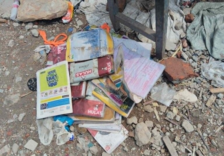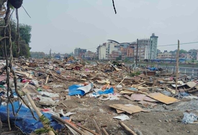 उनी पानीले भिजेका नातिनातिनाका किताब, भाँडाकुडा र लत्ताकपडा टक्टक्याउँदै थिइन् । चुरोटको धुवाँ फुक्दै उनले भनिन्, ‘माइती गएको बेला सरकारले डोजर चलाउने भन्यो । दर्गुदै आएपनि सामान जोगाउन सकिनँ । नातिनातिनाका किताब पनि जोगाउन सकिनँ ।’