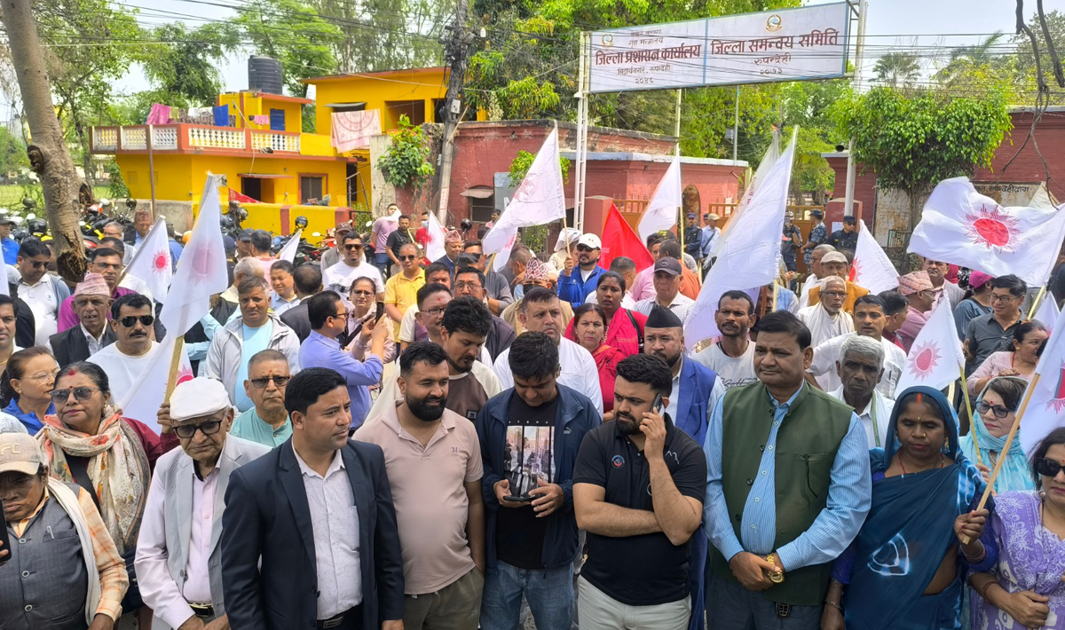 भैरहवा- नेकपा (एमाले) रुपन्देहीले पार्टी अध्यक्ष केपी शर्मा ओली तथा पूर्व गृहमन्त्री रमेश लेखकको गिरफ्तारीको विरोधमा जिल्ला प्रशासन कार्यालय अगाडि प्रदर्शन गरेको छ ।