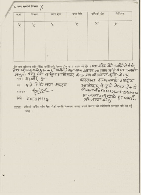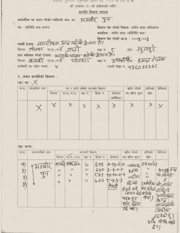 महावीरको सम्पत्ति : कास्कीमा २७ रोपनी जग्गा, श्रीमतीसँग तीन तोला सुन, दुई बैंकमा २९ लाख बचत