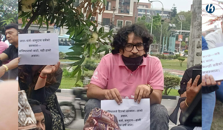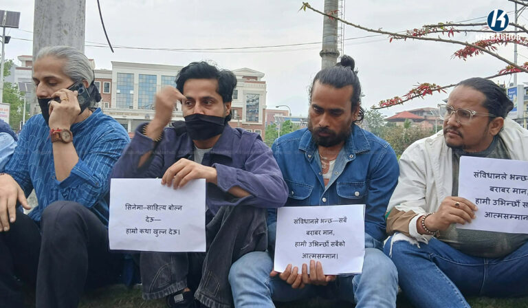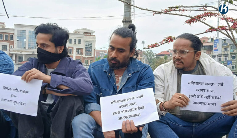 उक्त चलचित्रलाई अदालतले प्रदर्शनमा रोक लगाएपछि चलचित्रकर्मीहरू विरोधस्वरूप माइतीघर मण्डलमा उत्रिएका छन्। उनीहरूले सबैभन्दा पहिले १५ मिनेट मौन रहेर विरोध गरे । त्यसपछि प्ले कार्डसहित सडकमा आवाज उठाए। उनीहरूले अदालतबाट अभिव्यक्ति स्वतन्त्रतामाथि अंकुश लगाउने प्रयास भएको जनाएका छन् ।