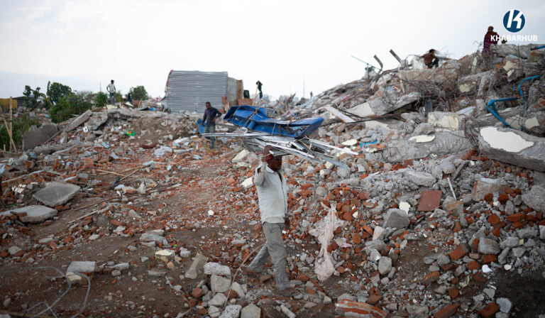 सरकारी डोजरले ढलेको मनोहरा सुकुम्वासी बस्तीबाट सामान निकाल्ने हतारो
