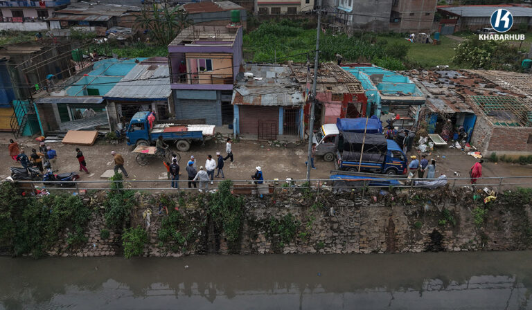 ड्रोनबाट यस्तो देखियो बालाजु स्थित सुकुम्वासी बस्ती (तस्बिरहरू)
