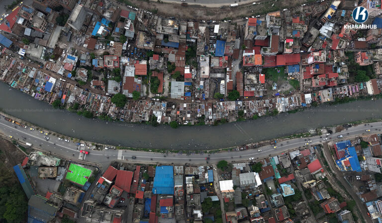 ड्रोनबाट यस्तो देखियो बालाजु स्थित सुकुम्वासी बस्ती (तस्बिरहरू) « Khabarhub