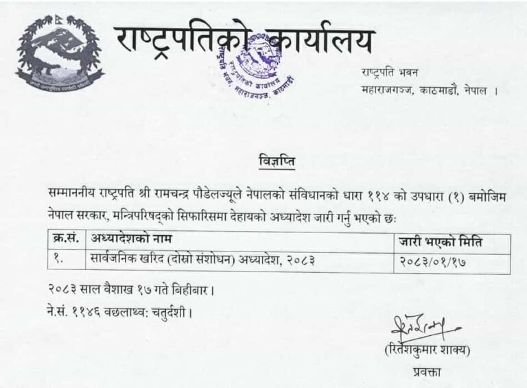 राष्ट्रपति पौडेलले जारी गरे सार्वजनिक खरिदसम्बन्धी अध्यादेश « Khabarhub