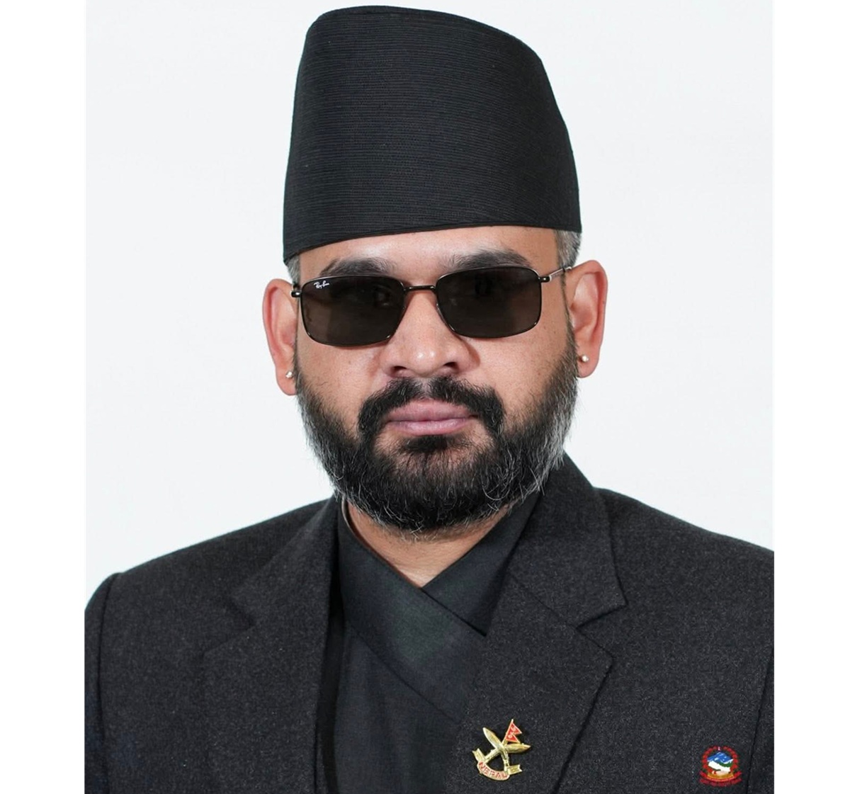 प्रधानमन्त्रीको अफिसियल फोटोमा कालो चस्मा,कालो टोपी कालै दौरा सुरुवाल र कोट देखिएको छ ।