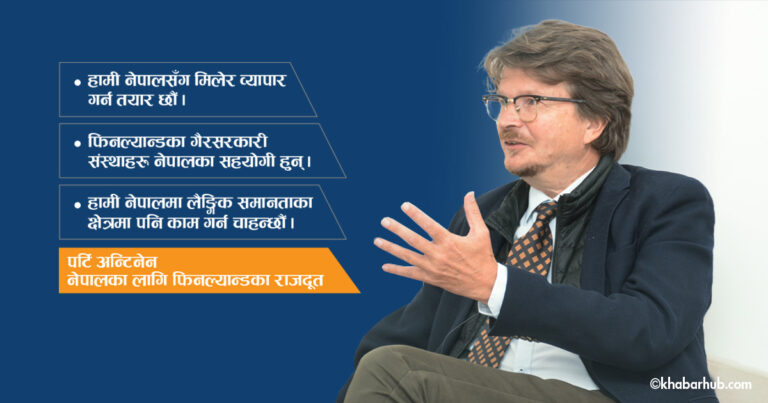 नेपालका लागि फिनल्यान्डका राजदूत पर्टि अन्टिनेन तीन वर्षदेखि नेपालमा छन् । उनलाई भ्रमणका लागि नेपाल