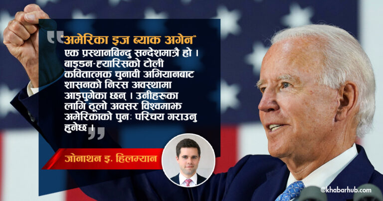 नोभेम्बरमा भएको अमेरिकी राष्ट्रपति निर्वाचनमा विजयी भएका जो बाइडनले विश्वका नेतामाझ एउटा उद्घोष गरिसकेका छन्,