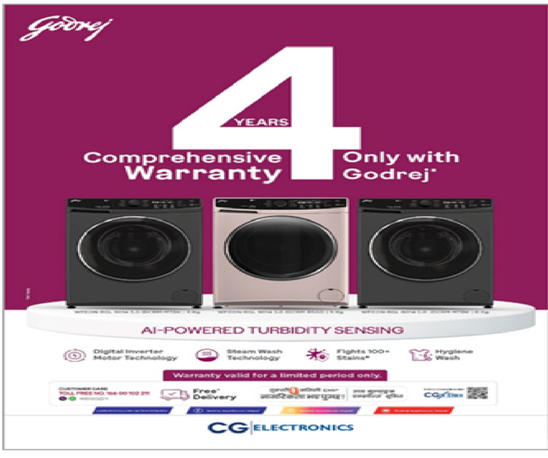 काठमाडौं – गोदरेज अप्लायन्सेसले नेपाली बजारमा आफ्ना प्रिमियम फ्रन्ट-लोड वाशिङ मेसिनहरूमा लागू गरिएको ४ वर्षे