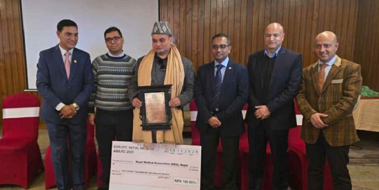 काठमाडौं– नेपाल चिकित्सक संघले युरोप नेपाल हेल्थ अवार्ड २०२५ प्राप्त गरेको छ । सोसाइटी अफ