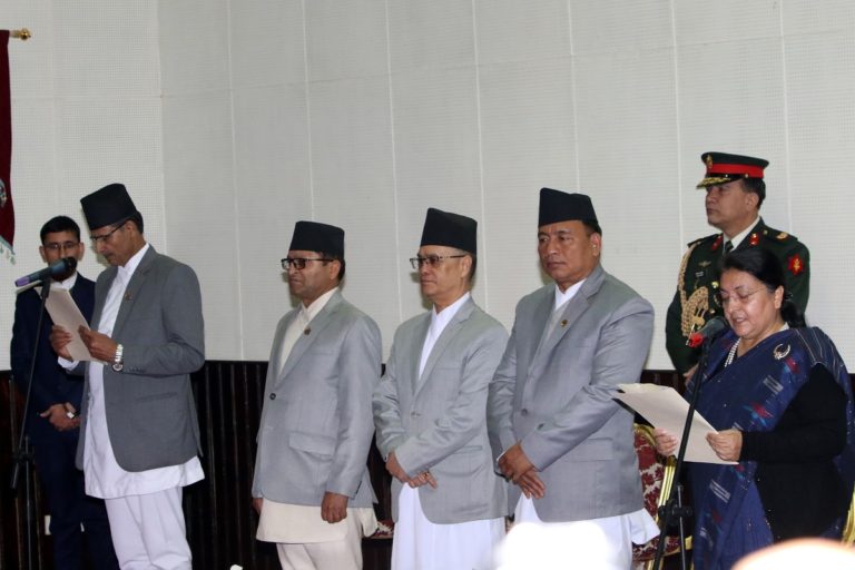 काठमाडौं–राष्ट्रपति विद्यादेवी भण्डारीले प्रतिनिधिसभाका नवनिर्वाचित सभामुख अग्निप्रसाद सापकोटालाई आज पद तथा गोपनीयताको शपथ गराएकी छिन्