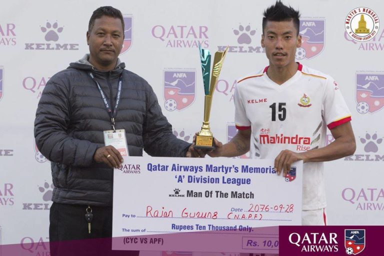 काठमाडौं– सहिद स्मारक ए डिभिजन लिगमा च्यासल युथ क्लबले विभागीय टोली सशस्त्र प्रहरी बलको एपीएफले