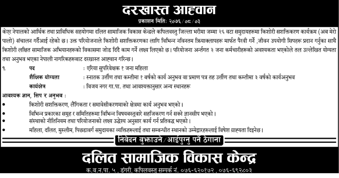 काठमाडौं- केयर नेपालको आर्थिक तथा प्राविधिक सहयोगमा दलित सामाजिक विकास केन्द्रले कपिलवस्तु जिल्लाका लागि केही