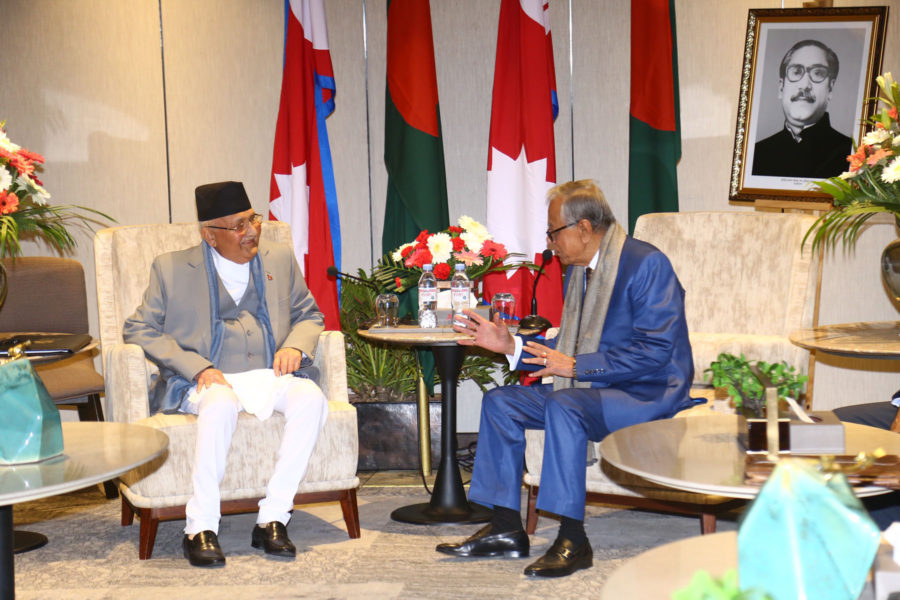 काठमाडौं– प्रधानमन्त्री केपी शर्मा ओली र बंगलादेशका राष्ट्रपति मोहम्मद अब्दुल हमिदबीच भेटवार्ता भएको छ ।