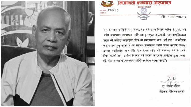 काठमाडौं– काठमाडौं महानगरपालिकाका प्रमुख बालेन्द्र शाह (बालेन) का पिता रामनारायण शाहको पार्थिव शरीर ०३ः१५ बजेसम्म
