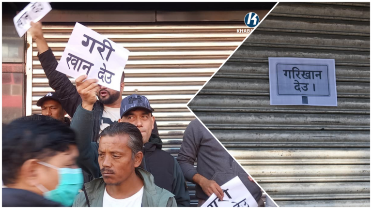 काठमाडौं– पोखरामा नेपाली कम्युनिस्ट पार्टी (नेकपा) को एकता सन्देश कार्यक्रममा व्यवसायीले ‘गरिखान देऊ’ भन्दै प्रदर्शन
