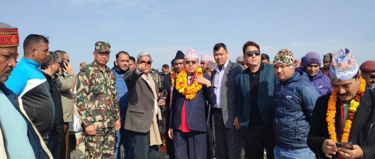 कञ्चनपुर– गृहमन्त्री रमेश लेखक र भौतिक पूर्वाधार तथा यातायातमन्त्री देवेन्द्र दाहालले महाकाली नदीमा निर्माणाधीन चार