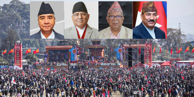 काठमाडौं– नेकपा एमालेको ११ औँ राष्ट्रिय महाधिवेशनको औपचारिक रूपमा सुरु नहुँदै भक्तपुरको सल्लाघारीस्थित तीनकुने मैदान