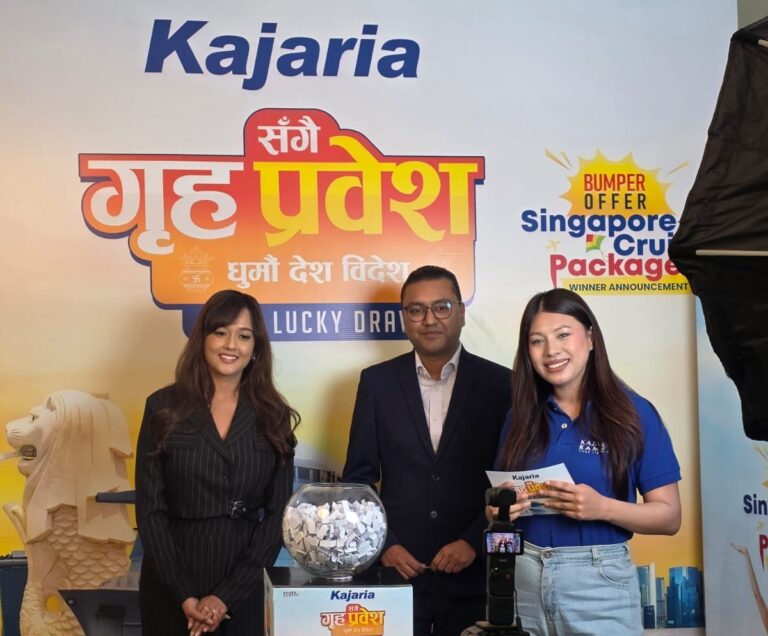 काठमाडौं– कजारिया टायल्सले ‘कजारियासँगै गृह प्रवेश, घुमौँ देश विदेश !’ को समापन गर्दै बम्पर पुरस्कार विजेताको घोषणा