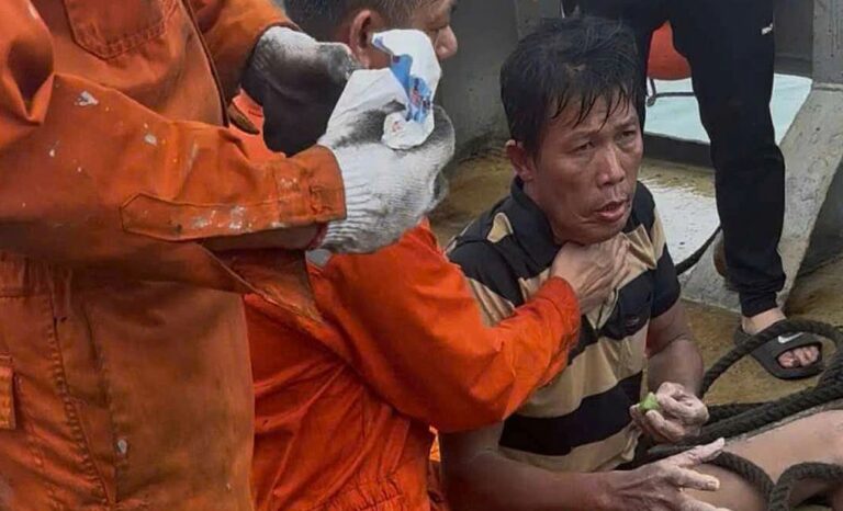हनोई – भियतनामको समुद्री तटबाट काल्मेगी आँधीपछि आएको बाढीले बगाएका तीन जना पुरुषलाई ४० घण्टाभन्दा