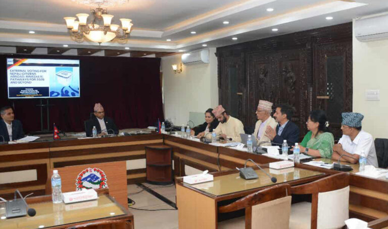 काठमाडौँ- आगामी निर्वाचनमा विदेशमा रहेका नेपाली मतदाताको मताधिका सुरक्षित गर्ने विषयमा सरोकारवाला निकायबीच छलफल भएको