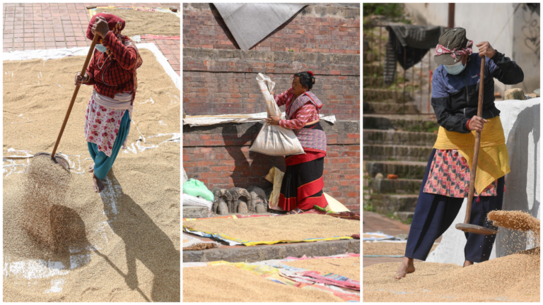 काठमाडौं– कीर्तिपुरका किसानहरूलाई अहिले धान सुकाउने चटारो परेको छ । जेठको अन्तिम हप्ता र असार महिनामा रोपिएको