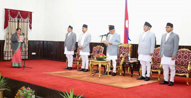काठमाडौँ– राष्ट्रपति रामचन्द्र पौडेलले नवनियुक्त सङ्घीय मामिला तथा सामान्य प्रशासनमन्त्री अनितादेवीलाई पद तथा गोपनीयताको शपथ