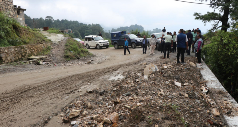 भक्तपुर– भक्तपुर नगरपालिका–१० कमलविनायक भत्केको पाटीमा सडकभरि खाल्डैखाल्डो। अलिमाथि नेपाली सेनाको खरिपाटी ब्यारेकदेखि चाँगुनारायण नगरपालिका