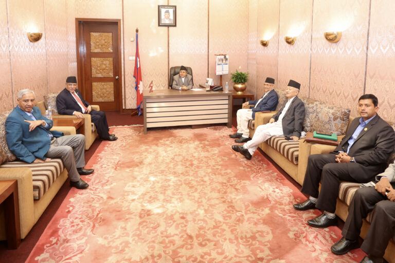 काठमाडौं- संसदको गतिरोध अन्त्यका लागि सभामुख देवराज घिमिरेसहित शीर्षनेताहरुको बैठक पुनः सुरु भएको छ ।