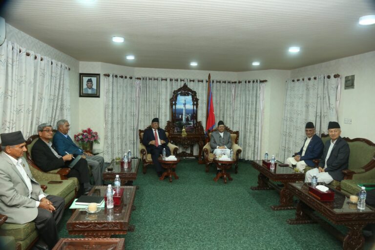 काठमाडौँ– संघीय संसदमा देखिएको गतिरोध अन्त्यका लागि सभामुख देवराज घिमिरेको आह्वानमा शीर्षनेताहरुको बैठक बसिरहेको छ