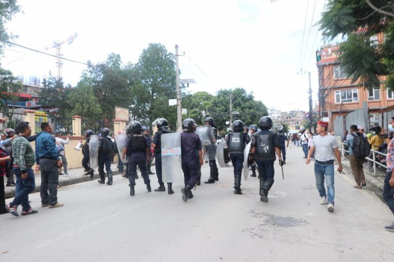 काठमाडौं– विवादास्पद अभिव्यक्ति दिएकी अधिवक्ता भगवती पाण्डेलाई पक्राउ गर्न दबाब दिँदै जिल्ला प्रहरी परिसर टेकुमा