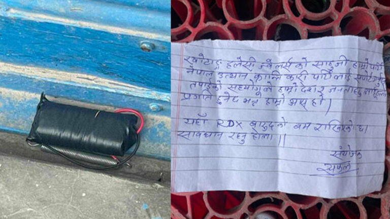 काठमाडौँ– काठमाडौं सिनामंगलमा शंकास्पद बस्तु भेटिएको छ । सिनामंगलको खोटाङ हेलेसी ज्वेलर्सको सटर बाहिर शंकास्पद