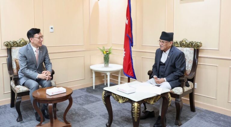 काठमाडौँ- प्रधानमन्त्री पुष्पकमल दाहाल प्रचण्डले नेपालका लागि नवनियुक्त दक्षिण कोरियाली राजदूत पार्क टाइयोङसँग शिष्टाचार भेट