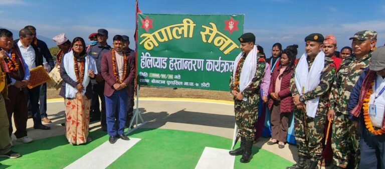 फागुन– डोटीको बोगटान फुड्सिल गाउँपालिका–७ चवराचौतारामा नेपाली सेनाद्वारा निर्माण गरिएको हेलिप्याड गाउँपालिकालाई हस्तान्तरण गरिएको छ