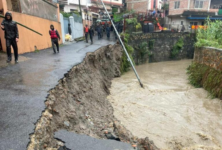 काठमाडौं – काठमाडौं महानगरपालिका १४ स्थित कुइनर हाउजिङ्ग नजिक सडक कटान हुँदा केही घर जोखिममा