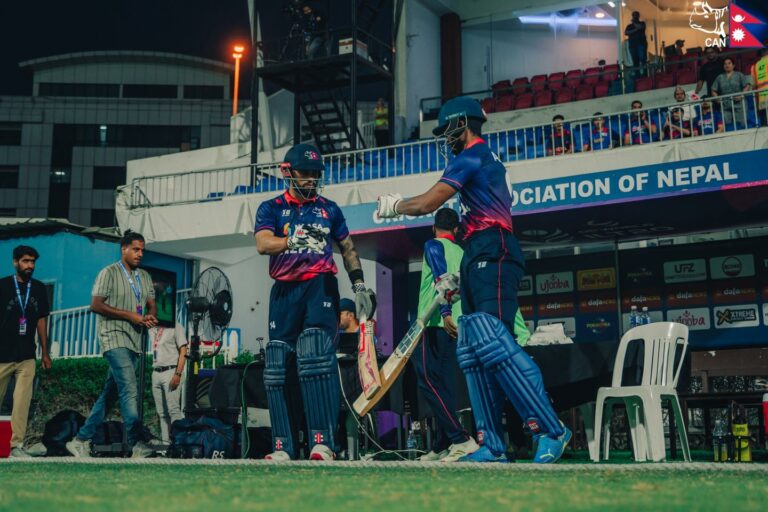 काठमाडौं – वेस्ट इन्डिजविरुद्धको ऐतिहासिक टी–२० आई सिरिजको पहिलो खेलमा ब्याटिङ गरिरहेको नेपालले चौथो विकेट