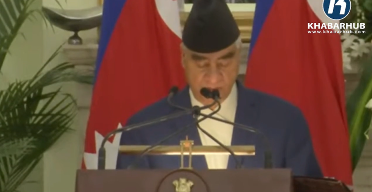 काठमाडौँ- प्रधानमन्त्री शेरबहादुर देउवा र भारतीय प्रधानमन्त्री नरेन्द्र मोदीले संयुक्त रुपमा पत्रकार सम्मेलनलाई सम्बोधन गरिरहेका