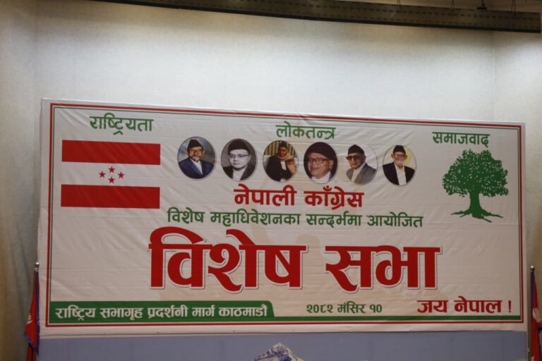 काठमाडौं – नेपाली कांग्रेसका विशेष महाधिवेशन पक्षधरको सभा आज यहाँ सम्पन्न भएको छ । प्रदर्शनीमार्गस्थित