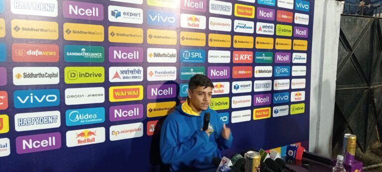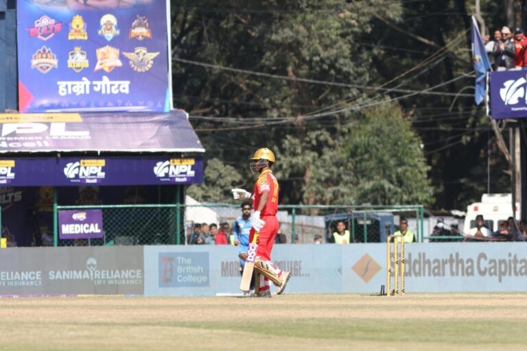 काठमाडौं – नेपाल प्रिमियर लिग (एनपीएल) सिजन २ अन्तर्गत शनिबार खेलमा कर्णाली याक्सविरुद्ध अर्धशतक प्रहार