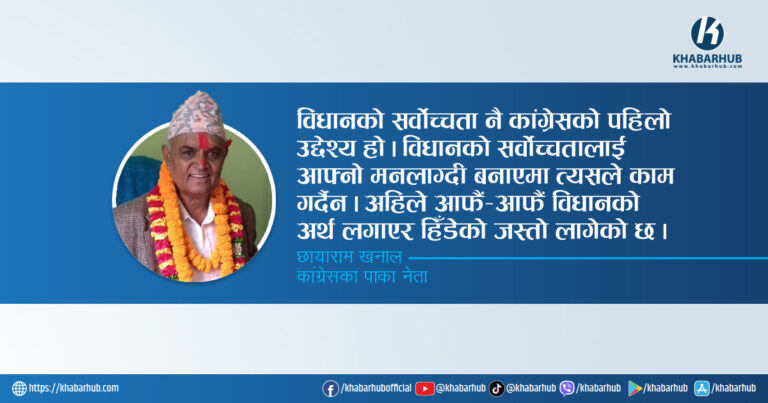 काठमाडौं – स्याङजा भिरकोट नगरपालिकाका पूर्वप्रमुख छायाराम खनाल नेपाली कांग्रेसलाई माया गर्ने मर्माहत रहेको बताउँछन्।